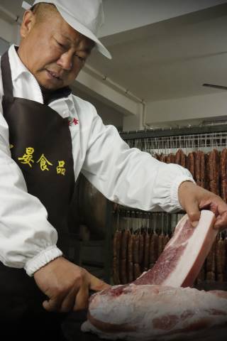 有了一定的资金积累后,龚绍荣不再满足于小打小闹,他想要拥有自己的产业,实现更大的创业梦想。于是,他回到了资阳,在城里买下了一处破旧的房子。经过简单的改造和修缮,他建起了自己的第一个厂房,这也标志着他的创业之路进入了一个全新的阶段。进城之后,他敏锐地发现,城里人的饮食需求更加多样化,尤其是对腊肉、香肠等传统腌腊制品情有独钟。但他自己并没有制作腌腊肉的经验,怎么办?龚绍荣深知“用人之道”,他四处打听,找到了当地技艺精湛的腌腊肉老师傅,诚恳地邀请他们加入自己的团队。为了尽快掌握腌腊技术,他每天跟着老师傅们学习,从食材的挑选、腌制的配料、晾晒的时长,到熏制的火候和温度,一一记在本子上,反复实践。遇到技术难题,他就和老师傅们一起探讨,不断改进工艺。